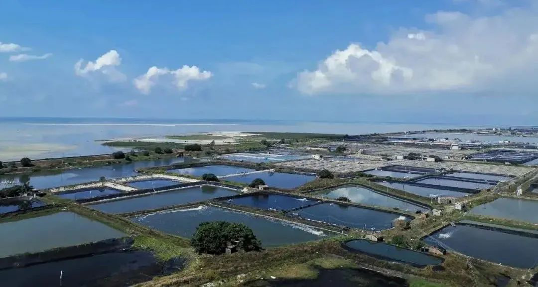 这里一片片的虾塘是通过人工挖掘形成,然后引灌北部湾海水,模拟天然的生存环境。北海13—15‰的海水盐度,以及富含微生物和矿物质等天然优势,给虾的生长提供了足够丰富的营养。