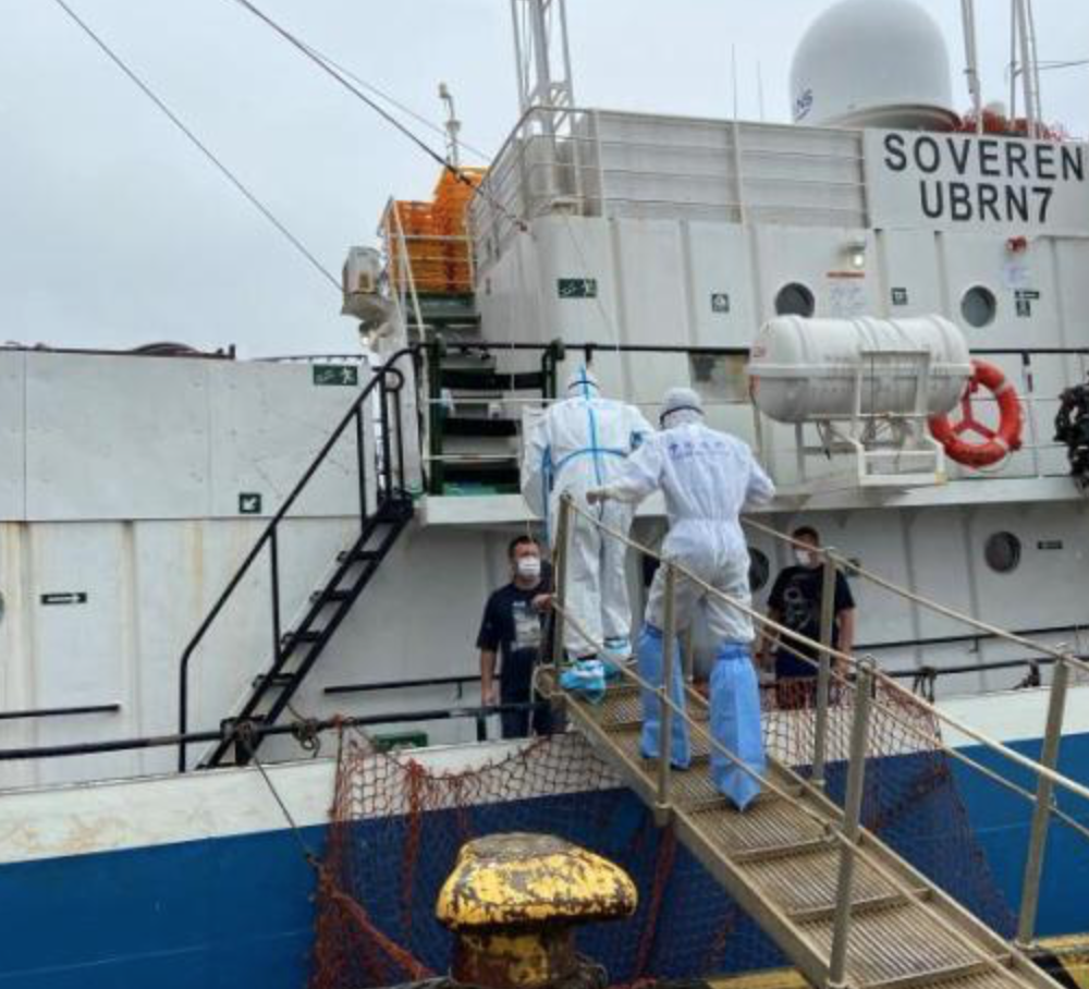 据横沙渔港公司介绍:“获得此次外轮进港消息后,公司在上海市商务委浦东办事处协调下,第一时间与边检、海关等口岸职能部门联系。货主方主动要求供货方对全体俄罗斯籍船员实施核酸检测,并每日进行体温测量。该企业严格按照规定采购防疫物资,设置现场防疫废弃物投放点,确保渔船靠泊期间疫情防控形成闭环。
